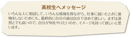 大学で得た知識を活かせる有機化学をメインの事業とする会社に、とても魅力を感じました。最終面接で、役員の方でも専門分野の知識に大変詳しいことに驚き、この方たちの下で働いてみたいと思いました。面接で自分の意見をしっかり伝えることができたことが、面接官へ熱意として伝わったのだと思います。