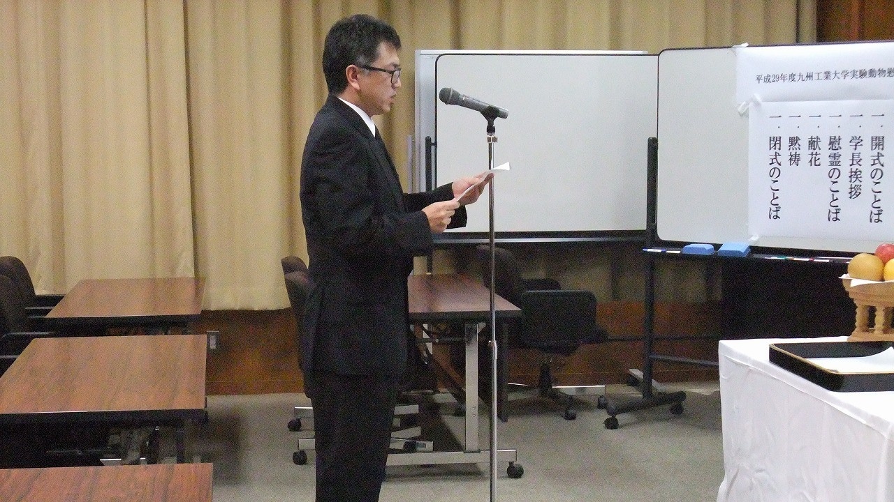 平成29年度九州工業大学実験動物慰霊式を遂行するにあたり、飯塚地区動物実験者を代表して、謹んで慰霊の言葉を述べさせて頂きます。