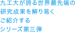 本学における研究成果を分かりやすく紹介する本として、2006年6月に「九工大世界トップ技術Vol.1」、2008年4月に「九工大世界トップ技術Vol.2」発刊し、このたび、第3弾となる「九工大世界トップ技術Vol.3」を発刊しました。 今回は、「これからの技術と需要をつなぐもの エコノミー&エコロジーfromエコフィッティング」と題し、「エコフィッティング」という本学発の技術コンセプトに立った研究成果を紹介する内容となっています。