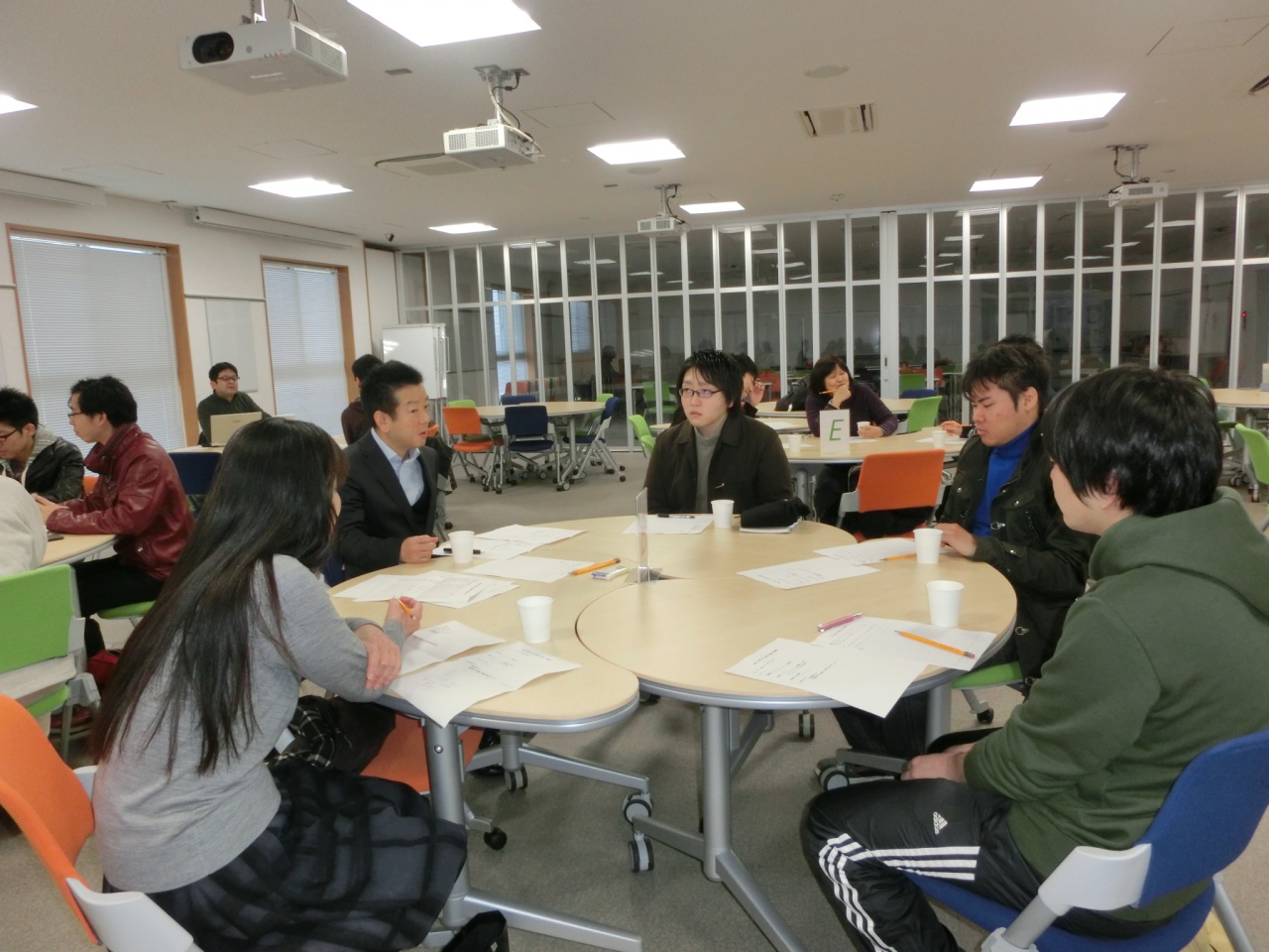 平成27年12月25日(金)、戸畑キャンパスにて、学生と教員との懇談会を開催しました。 大学院工学府・工学部教育方法等開発室が中心となって毎年度開催しているもので、学生の率直な意見を今後の教育改革や学生支援に役立てることを目的とし、今回で14回目の開催となります。 今年度は「学習動機と気づき」「技術者倫理関連科目」などのテーマについて、貴重な意見をいただきました。
